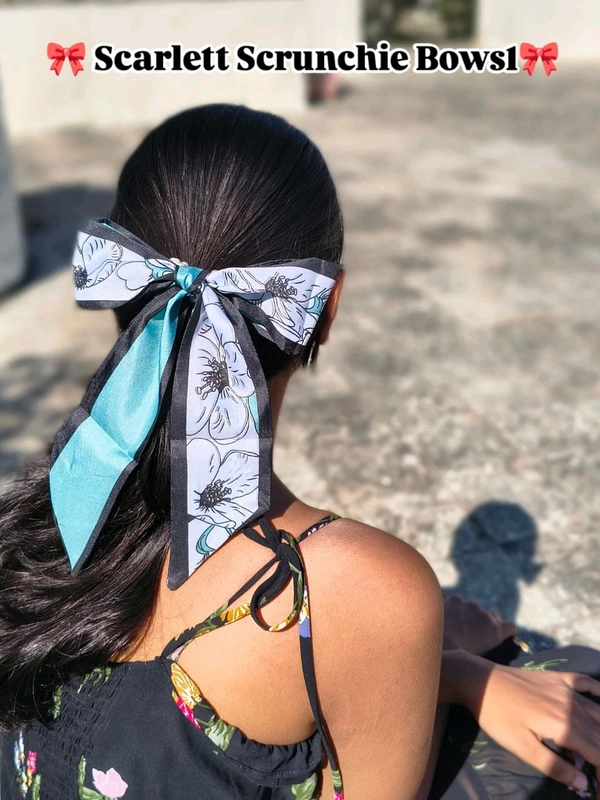 Premium Quality Silk Scarf Bow with pearl Scrunchie.